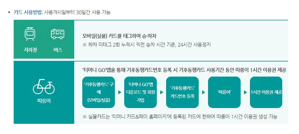 - 사용등록 : 티머니 카드&페이 앱에서 사용 등록 해야됨