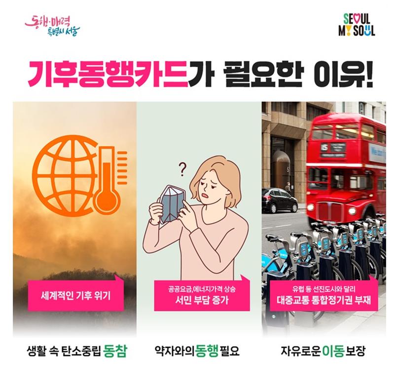 기후동행카드는 서울 시내에서 운행되는 지하철과 버스, 마을버스만 사용이 가능한데 추후 경기도와 인천시와 혐의를 통해 적용지역과 범위를 넓혀나갈 계획입니다.