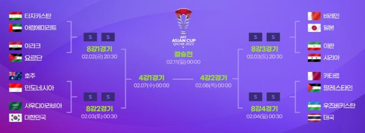2. 2023 카타르 아시안컵 16강 대진표