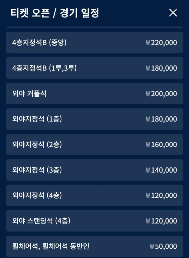 1월 25일(목)에 2024 MLB 서울시리즈 티켓 가격이 오픈되었는데 너무 비싸다, 이정도면 괜찮다 등등 가격에 대한 의견이 많습니다. 세계적인 선수들의 플레이를 내 눈앞에서 생생하게 관람할 수 있는 기회인데 이 정도의 가격은 수긍이 가는 가격이 아닐까 생각합니다. 다행히 쿠팡플레이 계정으로 최대 2매를 구입할 수 있고 그리고 경기장에서 신분증 확인까지 진행한다고 하니 암표로 인한 가격 부풀리기는 많이 일어나지 않을 거 같습니다. 아래의 그림은 경기장 위치와 위치에 따른 가격이니 참고하시길 바랍니다.